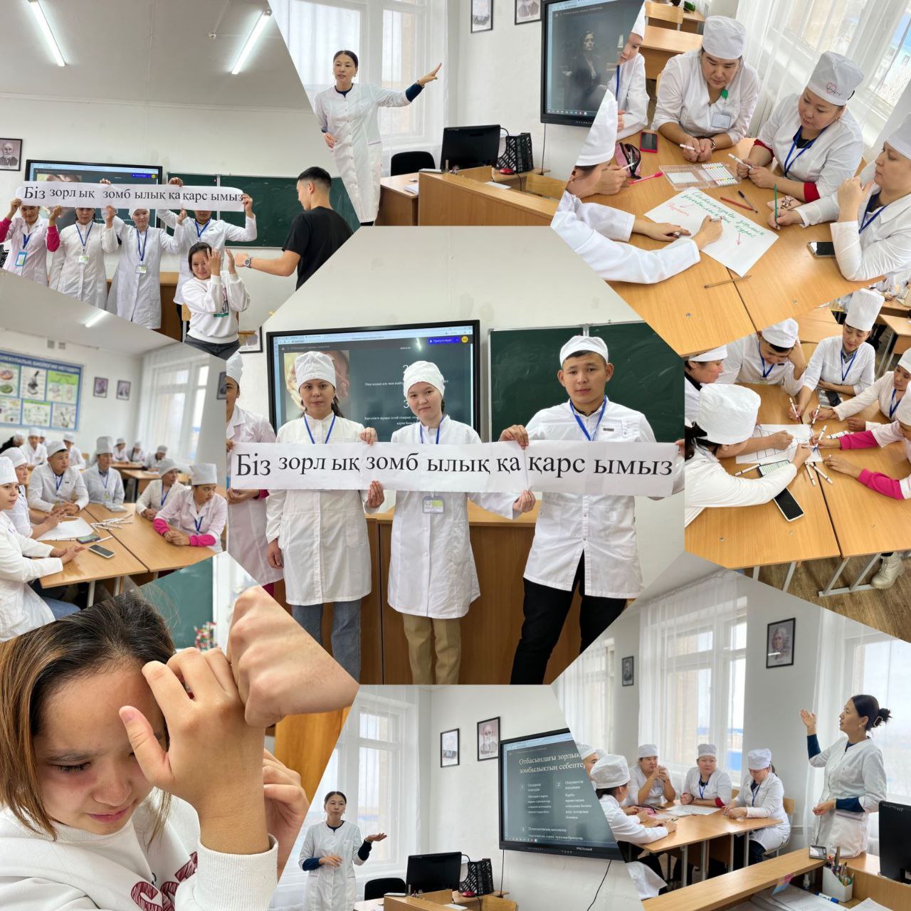 «16 күн зорлық-зомбылықсыз» халықаралық акция аясында Арқалық медициналық колледжінің 2 курс оқушылары арасында «Отбасындағы зорлық -зомбылық » атты сынып сағатты өтті. Мақсаты: құқықтық сауаттылығын арттыру, салауатты өмір салтын қалыптастыру, құқық бұзушылықтың, тұрмыстық зорлық-зомбылықтың алдын ала отырып, отбасылық құндылықты бағалауды көздейді.